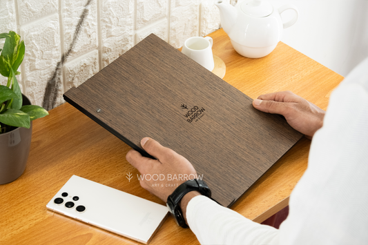 Present your menus with style using our Wooden Menu Holder, a sophisticated display stand crafted...