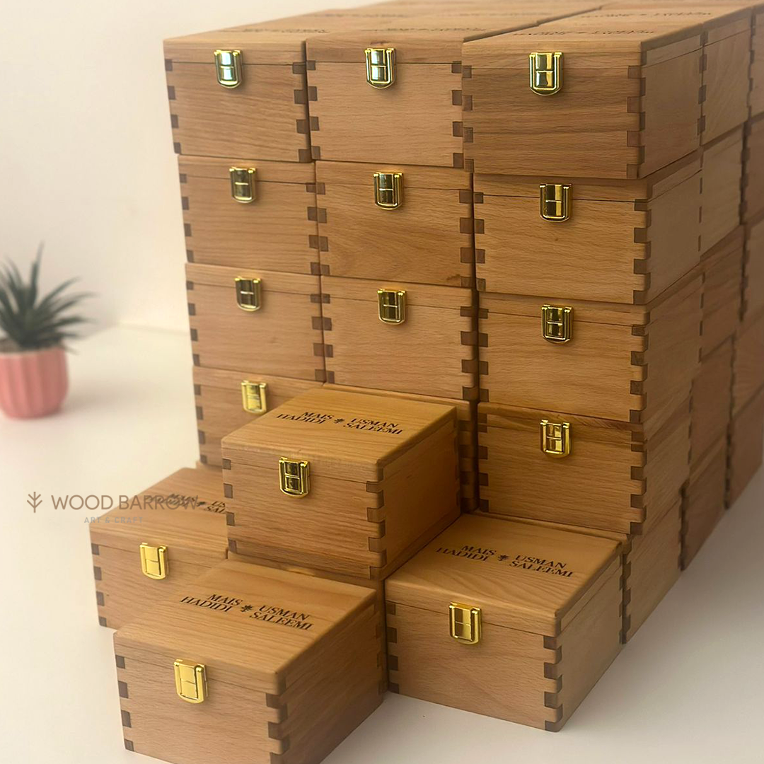 Celebrate the magic of love with our exquisite Personalized Wooden Wedding Gift Box. Crafted from high-quality wood and expertly engraved with the couple's names and wedding date, this gift box adds a touch of elegance to any celebration. Perfect for presenting wedding favors, keepsakes, or special mementos, it's a timeless treasure that commemorates their special day. Make your gift truly unforgettable with our customizable wedding gift box. Order now and create lasting memories!