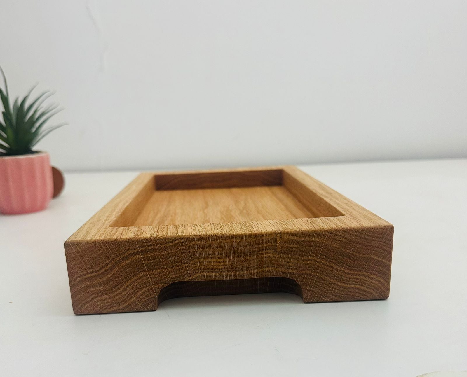 Experience the charm of our Red Oak Wooden Serving Tray, meticulously crafted from a single piece of 3cm thick Red Oak wood. This exquisite tray, measuring 33cm x 20cm x 3cm, seamlessly marries functionality with aesthetics, making it a standout addition for both home and hospitality use.