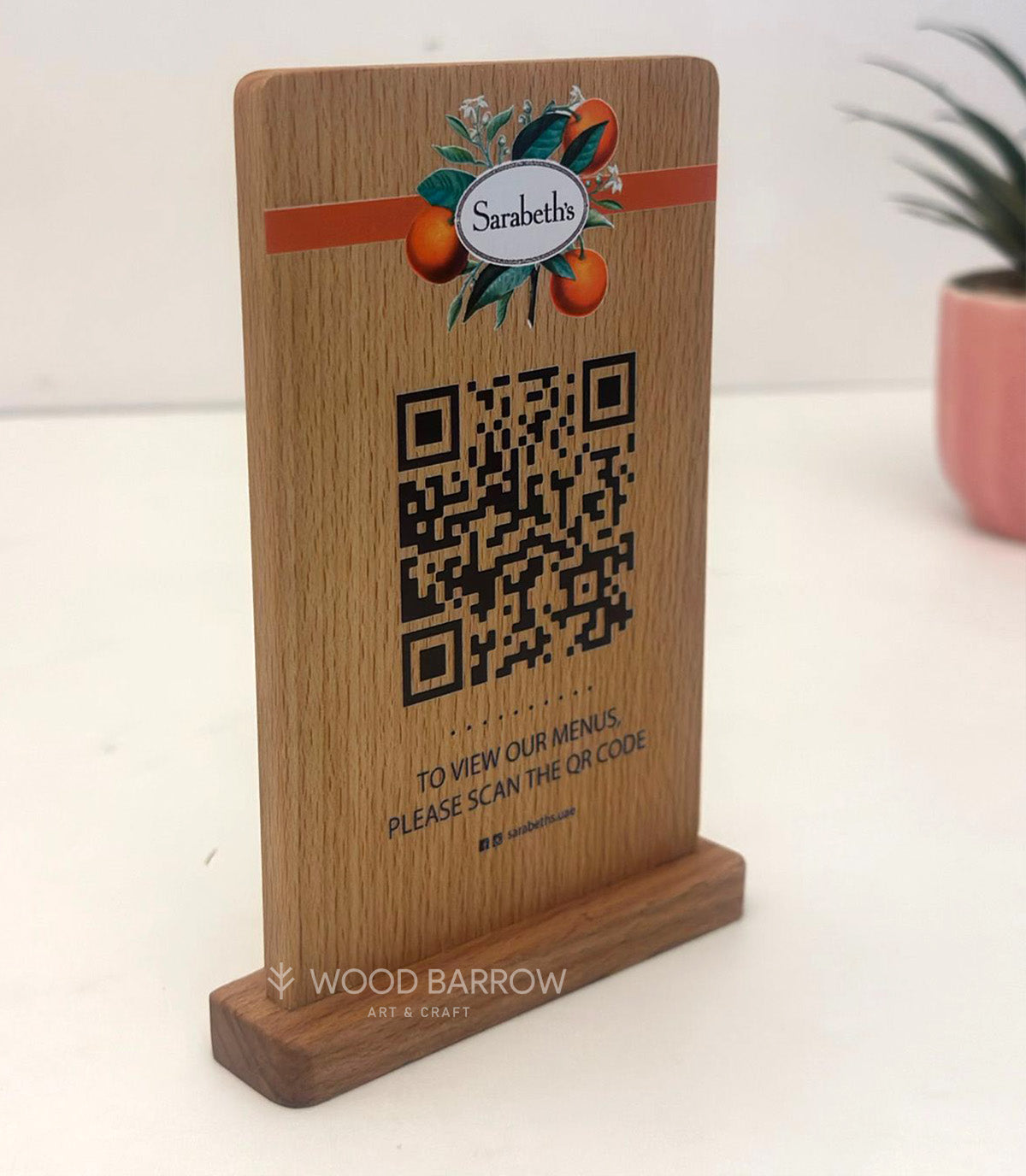 Enhance your digital presence and brand identity with our custom wooden QR sign, uniquely designed to blend traditional craftsmanship with modern technology. Crafted from premium wood, this sign features a QR code that links directly to your digital content, website, or promotional campaign.