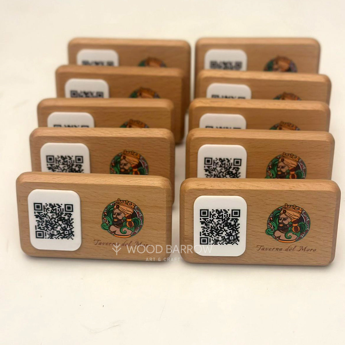 Enhance customer engagement and brand visibility with our customizable wooden QR stand, designed to seamlessly integrate traditional elegance with modern digital interaction. Crafted from premium wood, this stand features a prominent QR code that links directly to your digital content, website, or promotional materials.