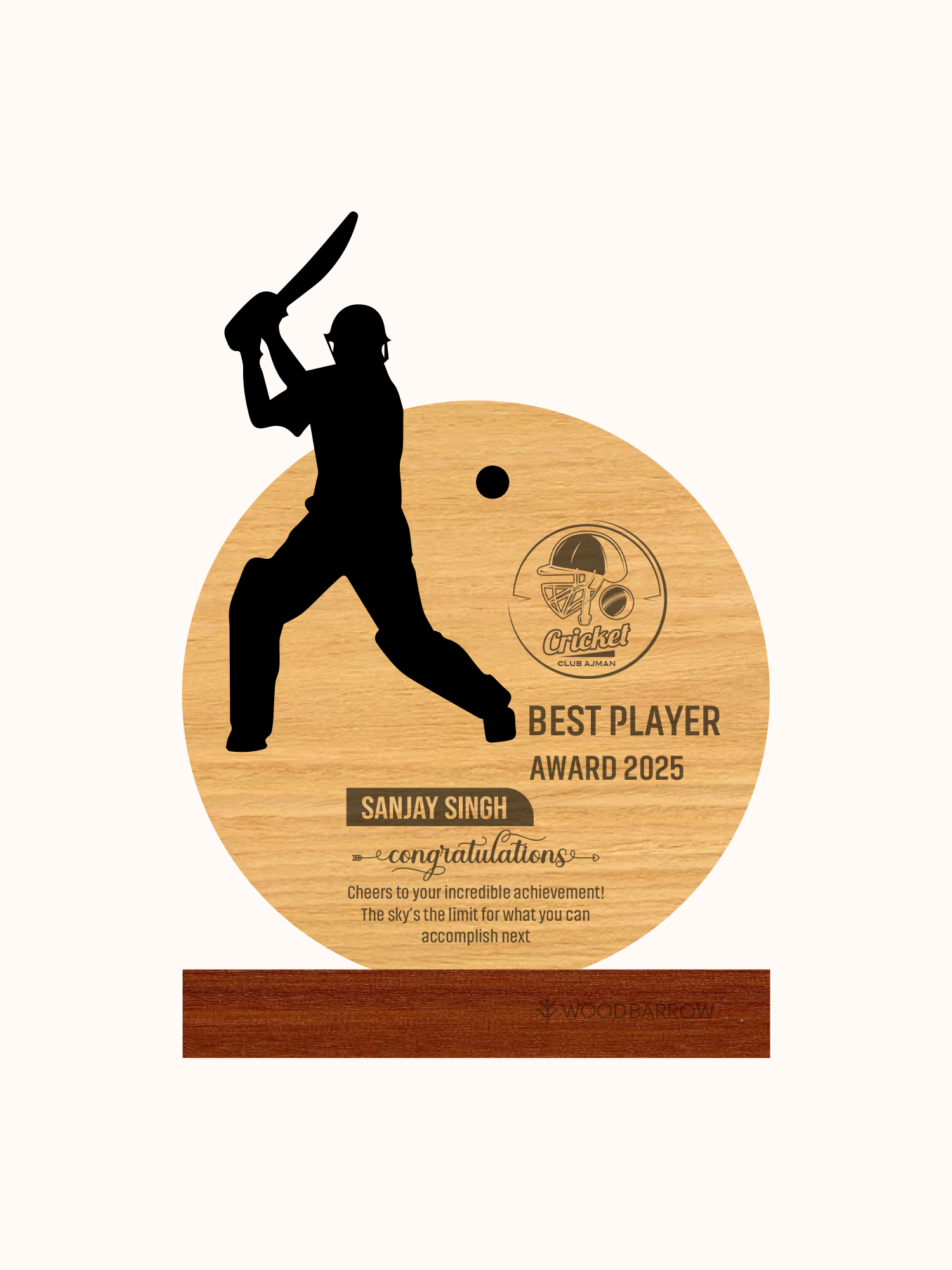 Customized Wooden & Acrylic Cricket "Best Player" Trophy