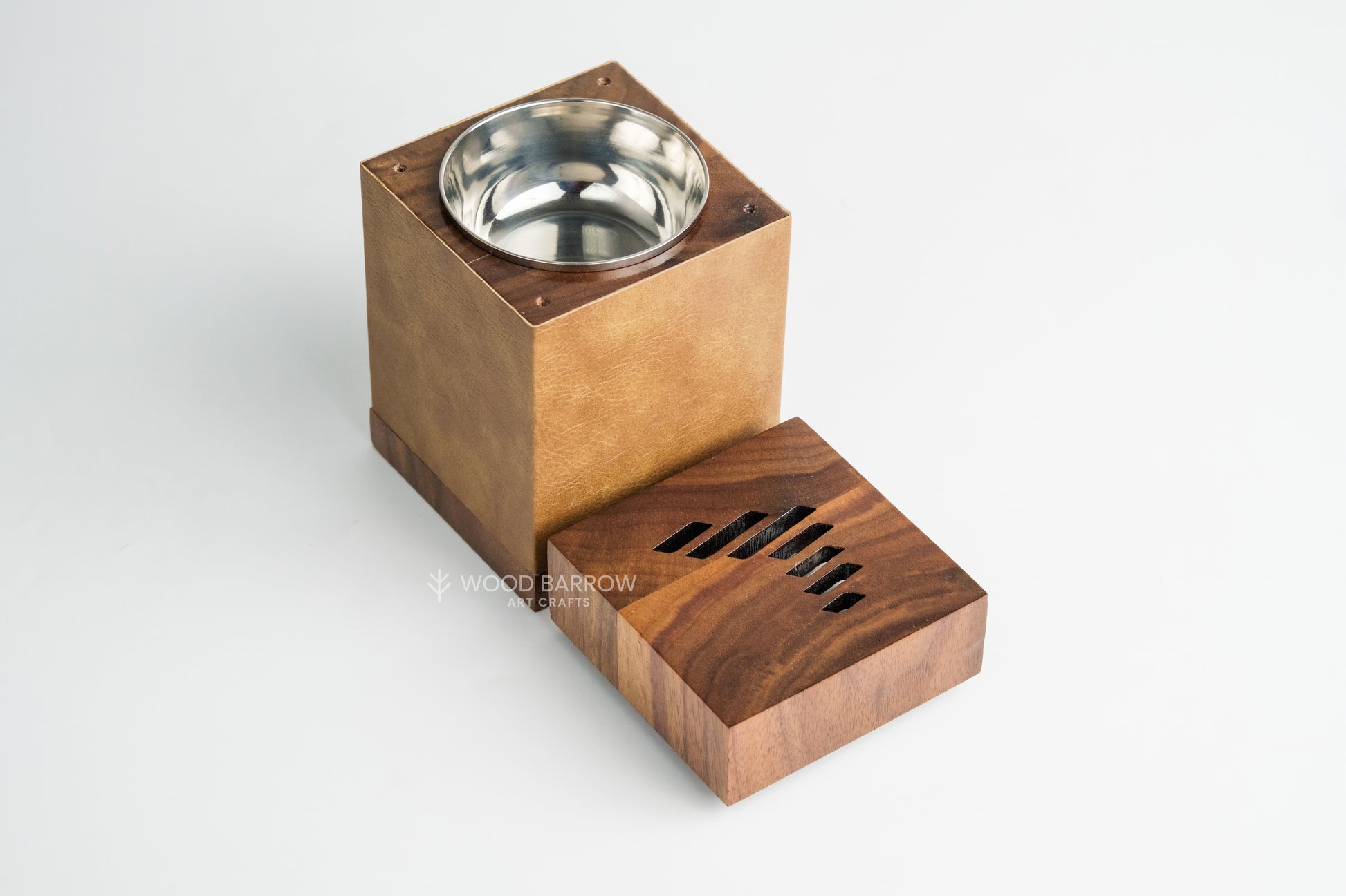 Luxury Walnut Wooden Bakhoor Burner with Leather
