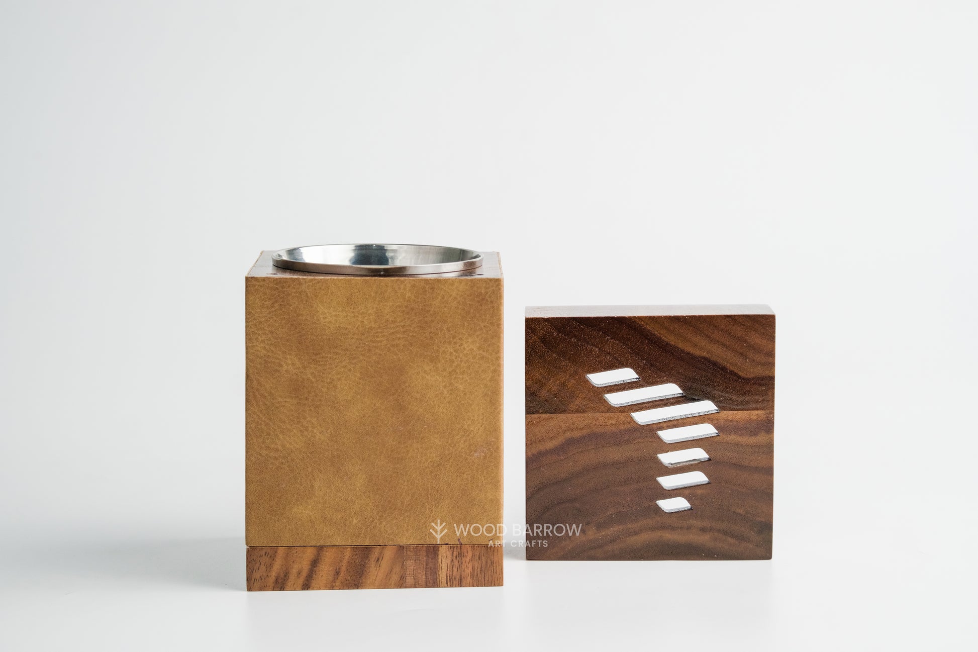 Indulge in the exquisite aromas of luxury with our Walnut Wooden Bakhoor Burner, elegantly crafted and adorned with supple leather covering. This artisanal burner adds a touch of sophistication to any space while infusing it with captivating scents. Handcrafted from premium walnut wood and finished with meticulous attention to detail, this burner enhances the ambiance of your home with its timeless beauty and rich fragrance diffusion. Whether you're unwinding after a long day or entertaining guests, our Walnut Wooden Bakhoor Burner promises a sensory journey like no other. Elevate your home fragrance experience today!