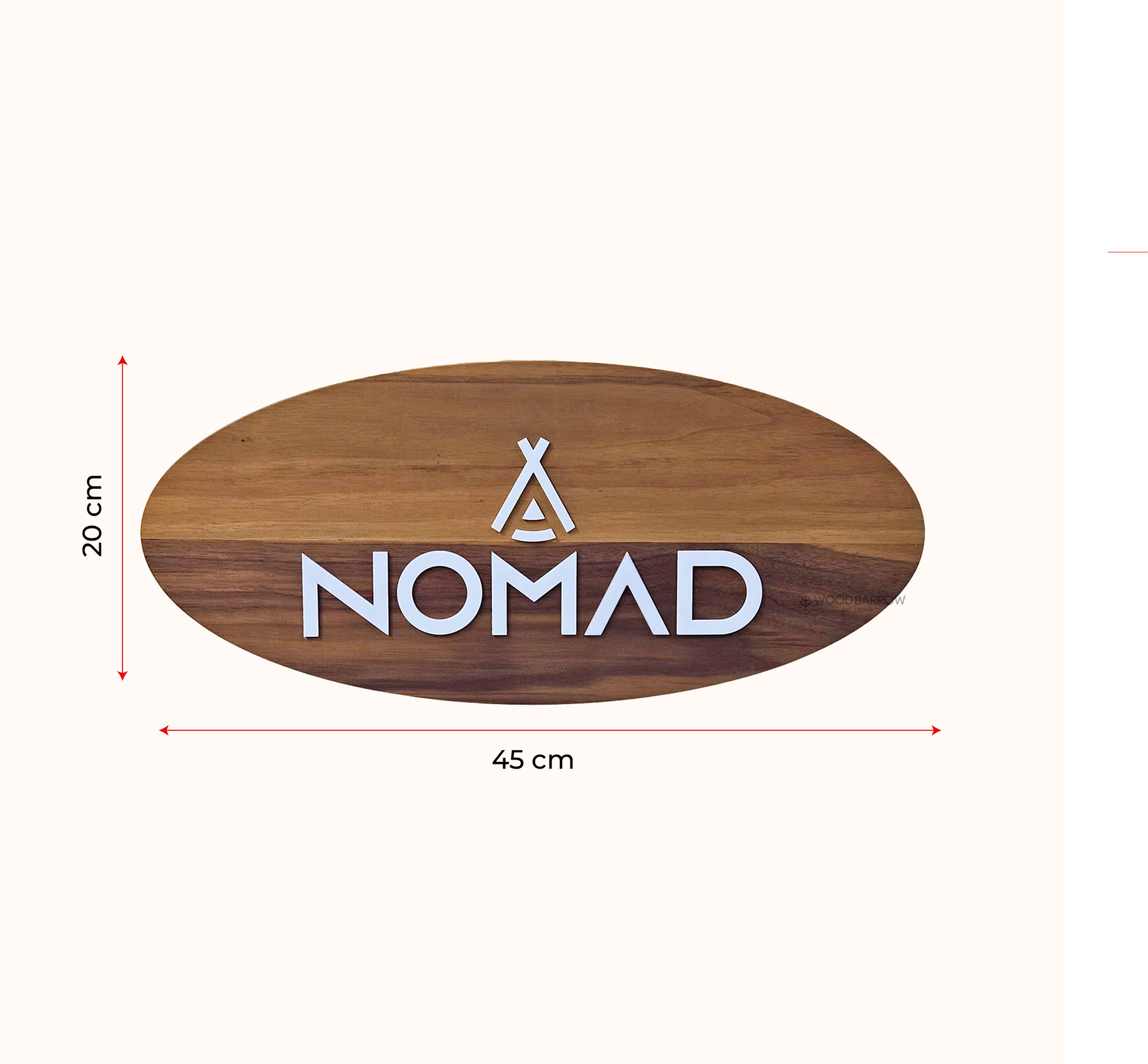 Oval Walnut Wood Name Plate – 45x20cm | Custom Acrylic Lettering | Elegant Home Sign