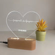 The lamp itself is made from high-quality acrylic, which gives it a sleek and modern appearance. The transparency of the acrylic allows the warm, soft light to shine through, creating a captivating and romantic ambiance. The base, made from solid wood, adds a touch of natural beauty to the overall design.