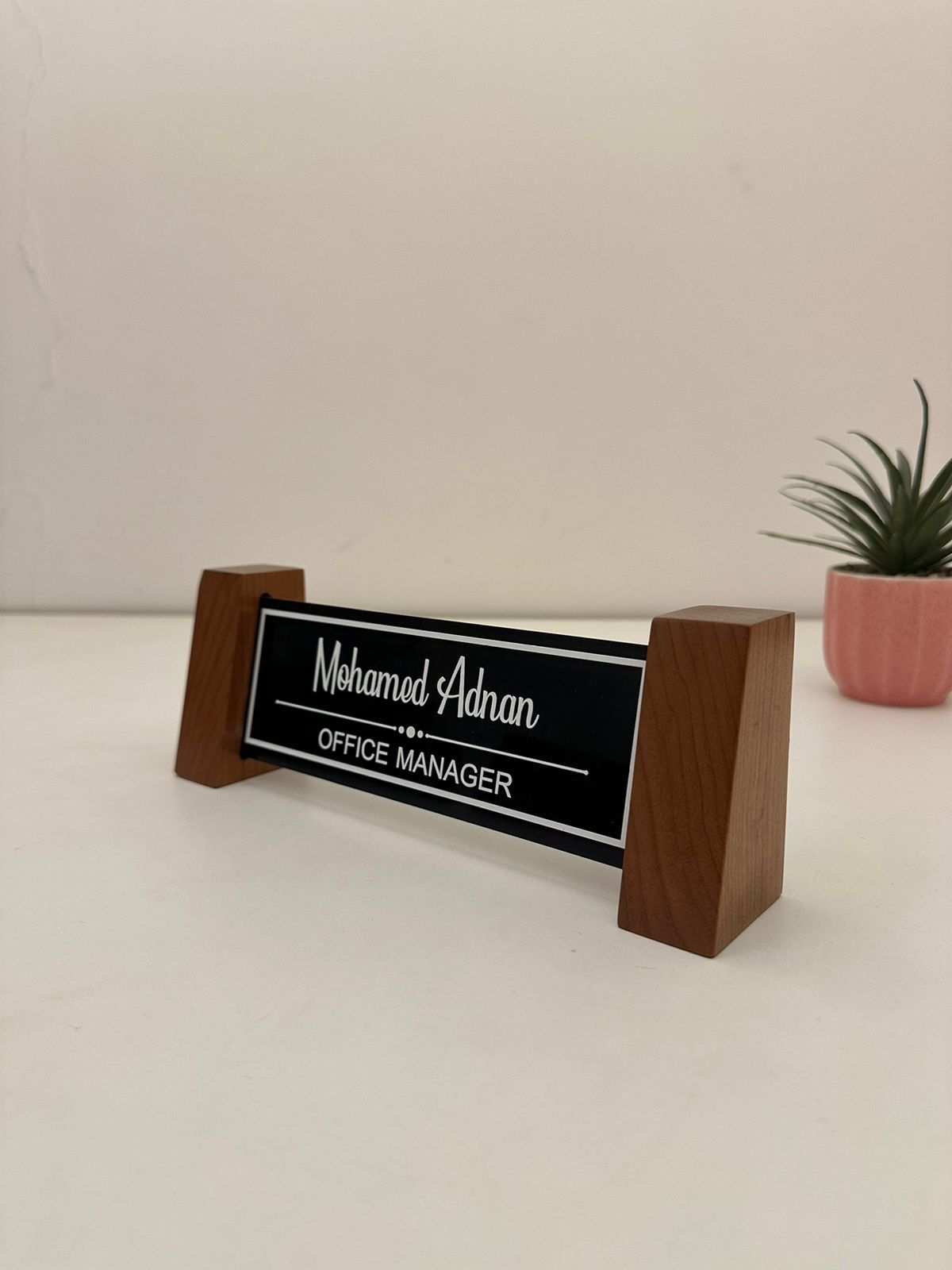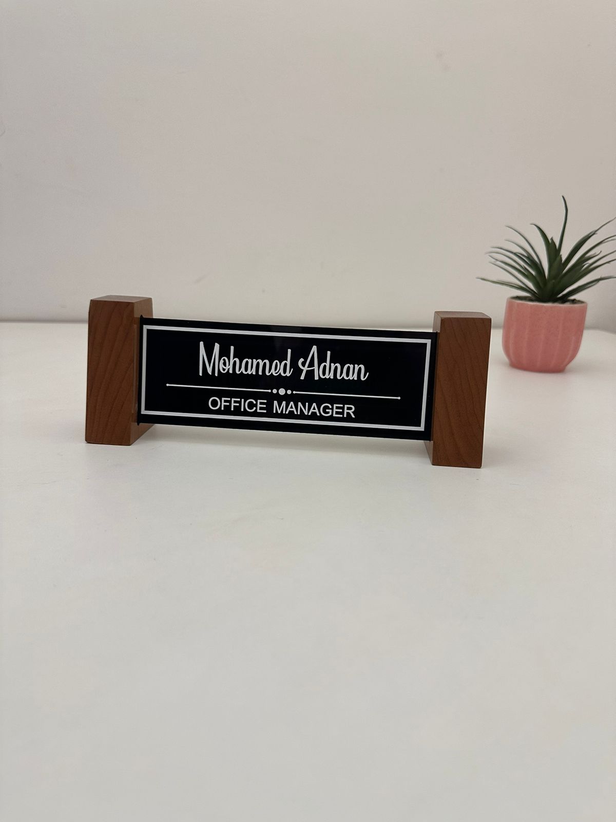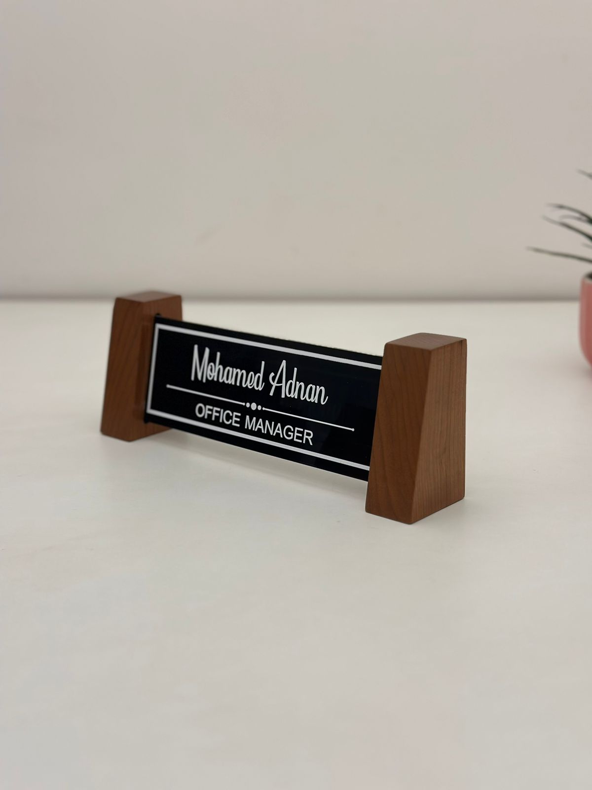 Transform your workspace with our exquisite Personalized Wooden Desk Name Plate, meticulously crafted for a touch of elegance. Measuring 25cm x 9cm, this custom name plate seamlessly blends premium wood and acrylic, creating a sophisticated accessory for your desk or office space. Personalize it with your name or a thoughtful message to make a statement that reflects your individuality.