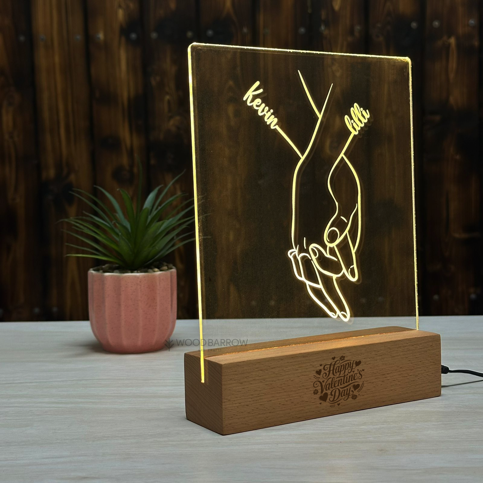 Valentine’s Day Gifts for Her – Custom Couple’s Acrylic Plaque with Wooden Base