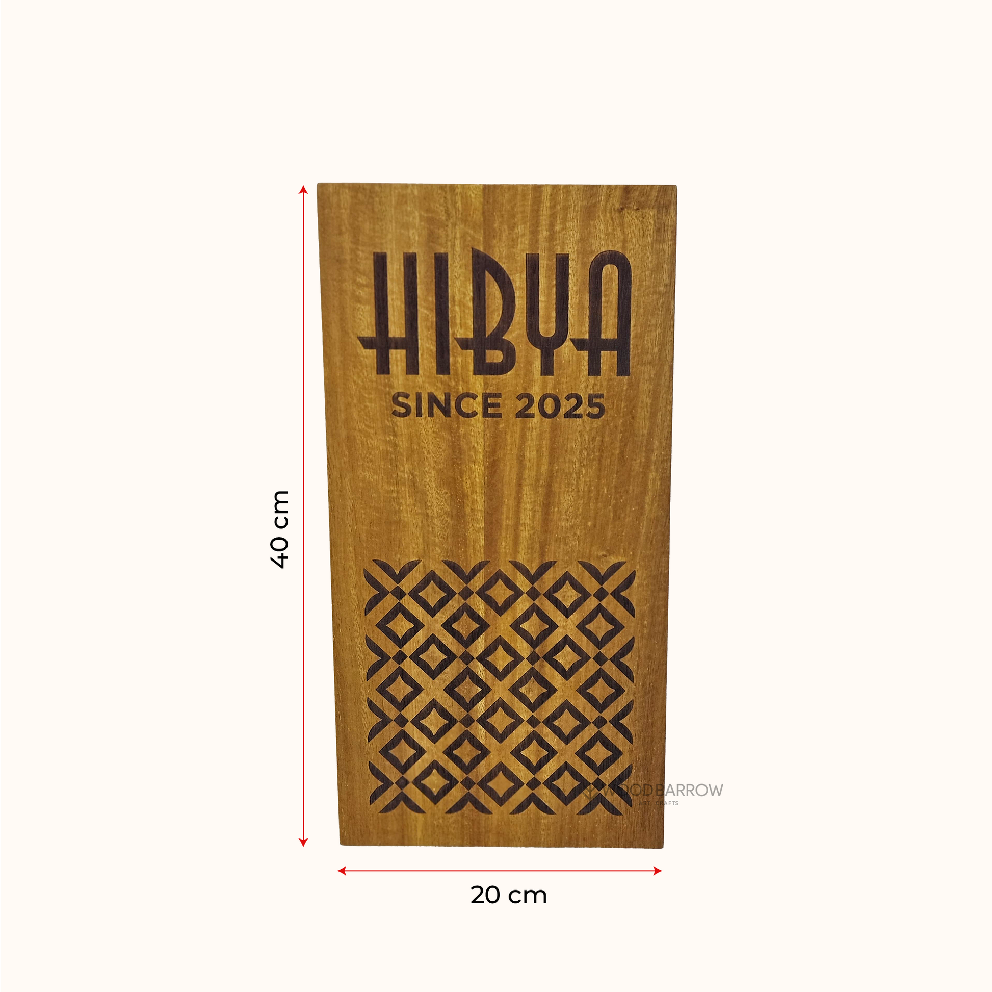 Add vertical elegance to your home or villa entrance with this stunning teak wood name plate, measuring 20cm wide by 40cm tall. Crafted from premium teak wood known for its durability and rich grain, this sign features detailed engraved writings and decorative designs that blend artistry with clear personalization.