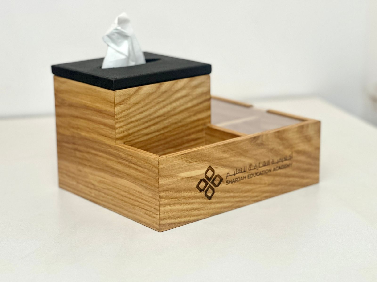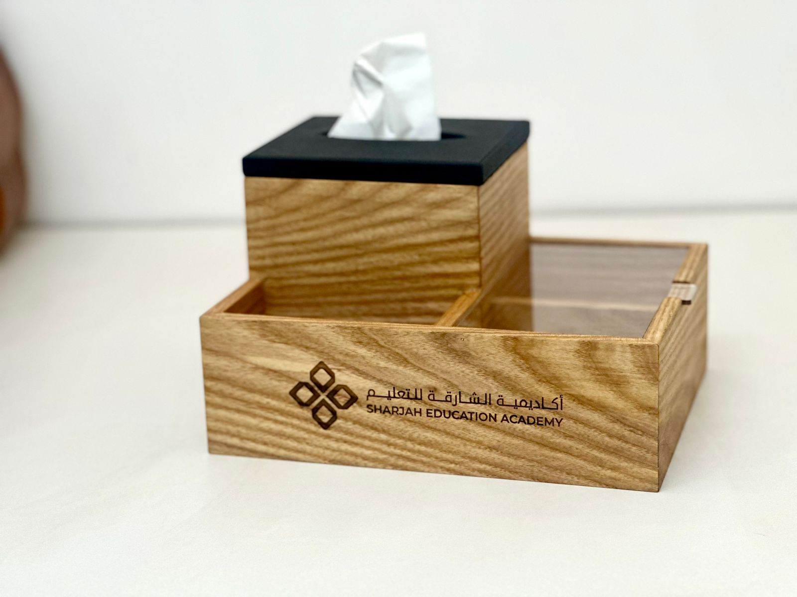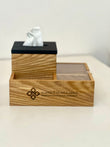 Transform your desk into a haven of efficiency and sophistication with our exclusive Wooden Desk Organizer Set. Crafted with precision from high-quality wood, this exquisite ensemble includes a Tissue Box, Nuts Tray, and Bottle Holder, all personalized with your logo. The dimensions of 25cm x 25cm x 12cm ensure a perfect fit for any workspace.