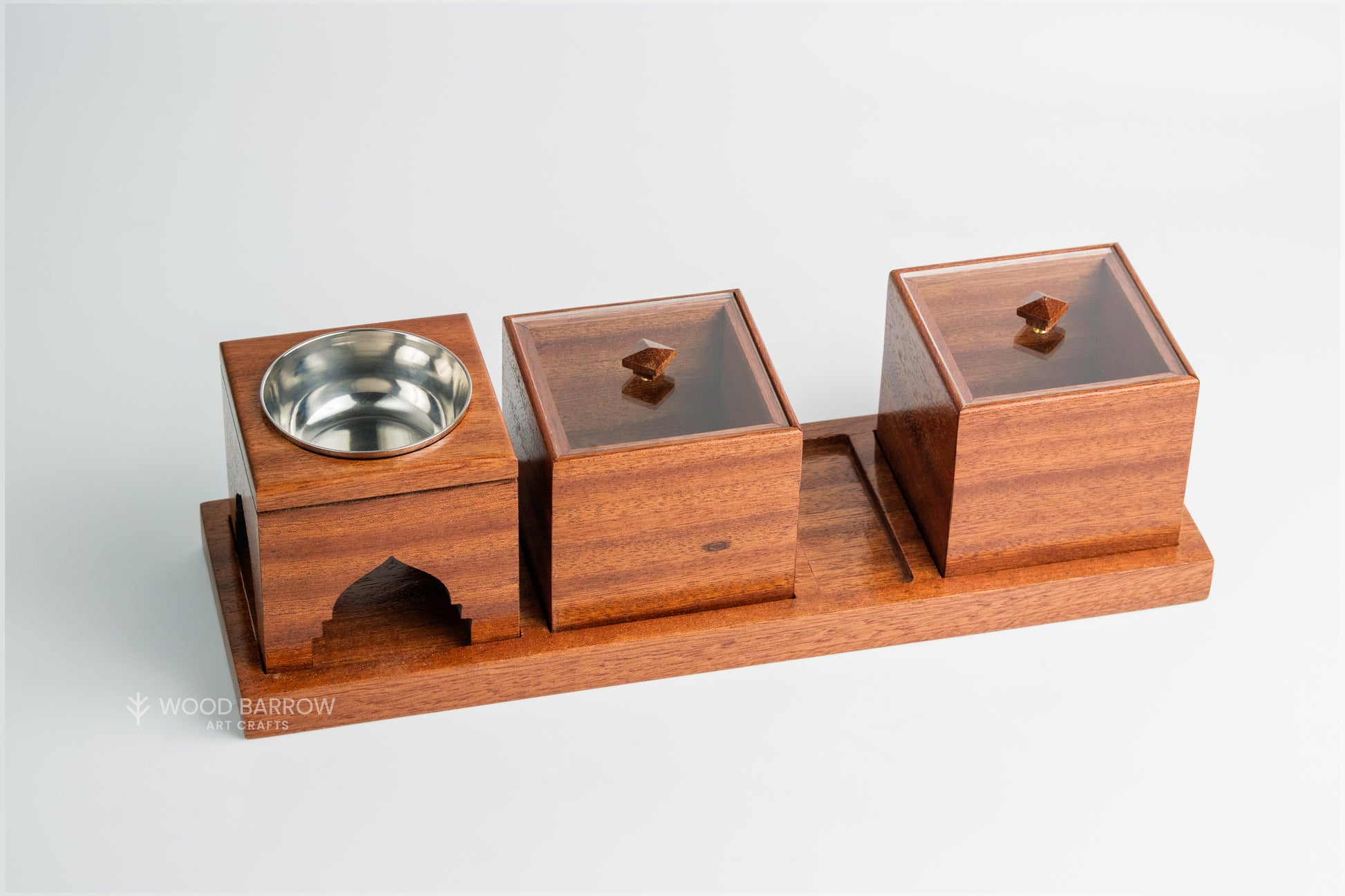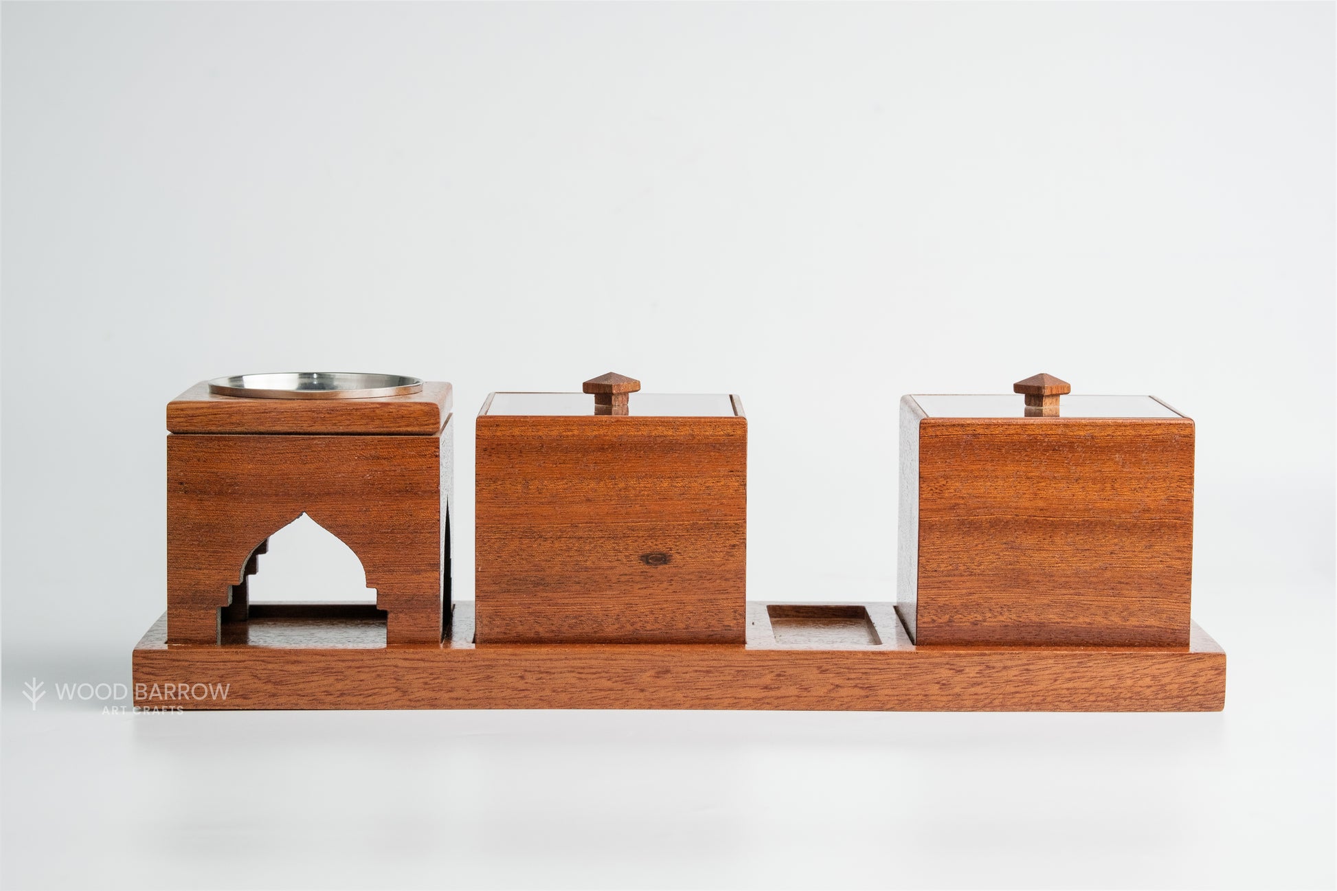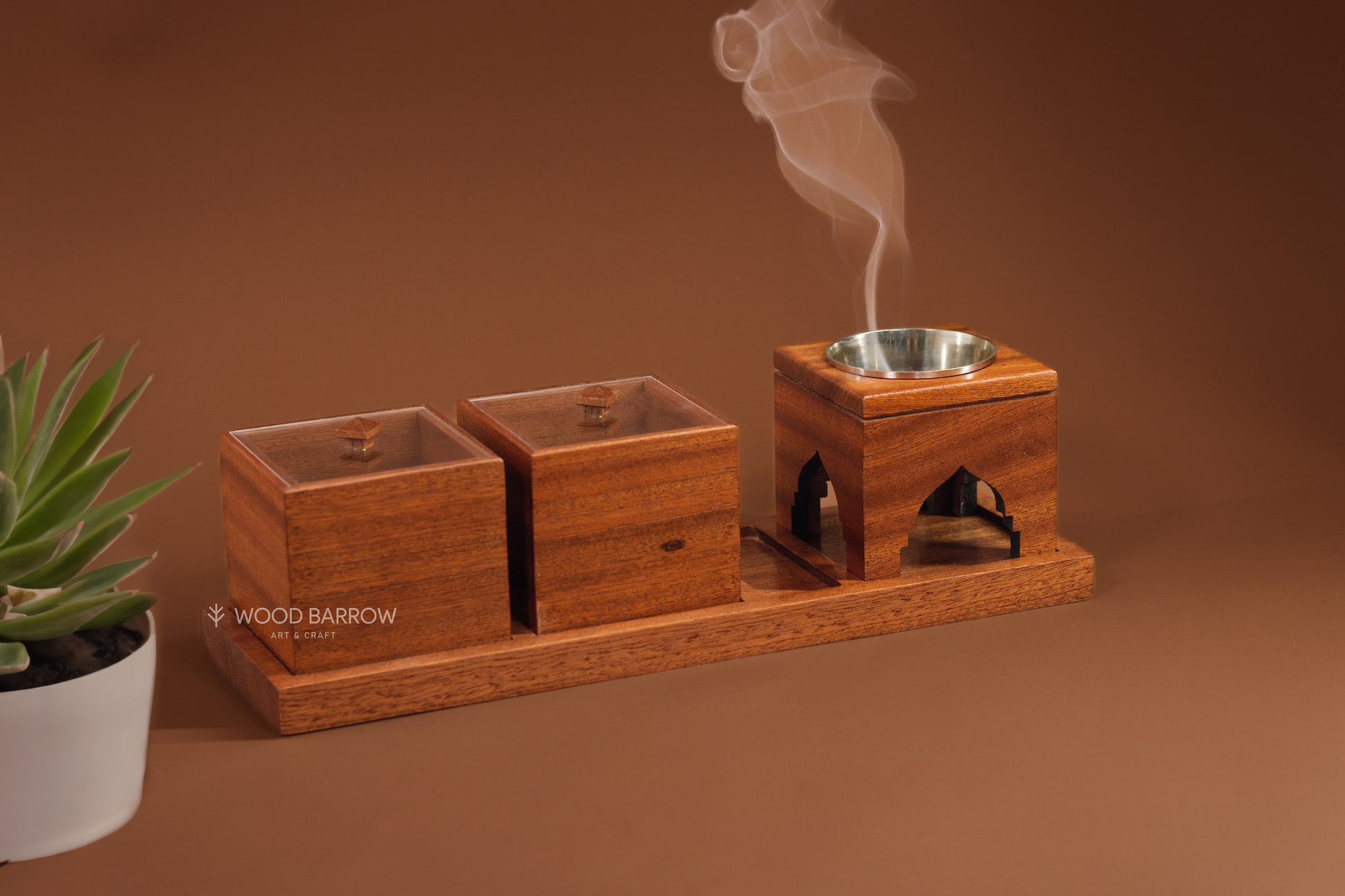 Wooden Madkhan Burner Set: Traditional Incense Holder Ensemble for Aromatic Rituals