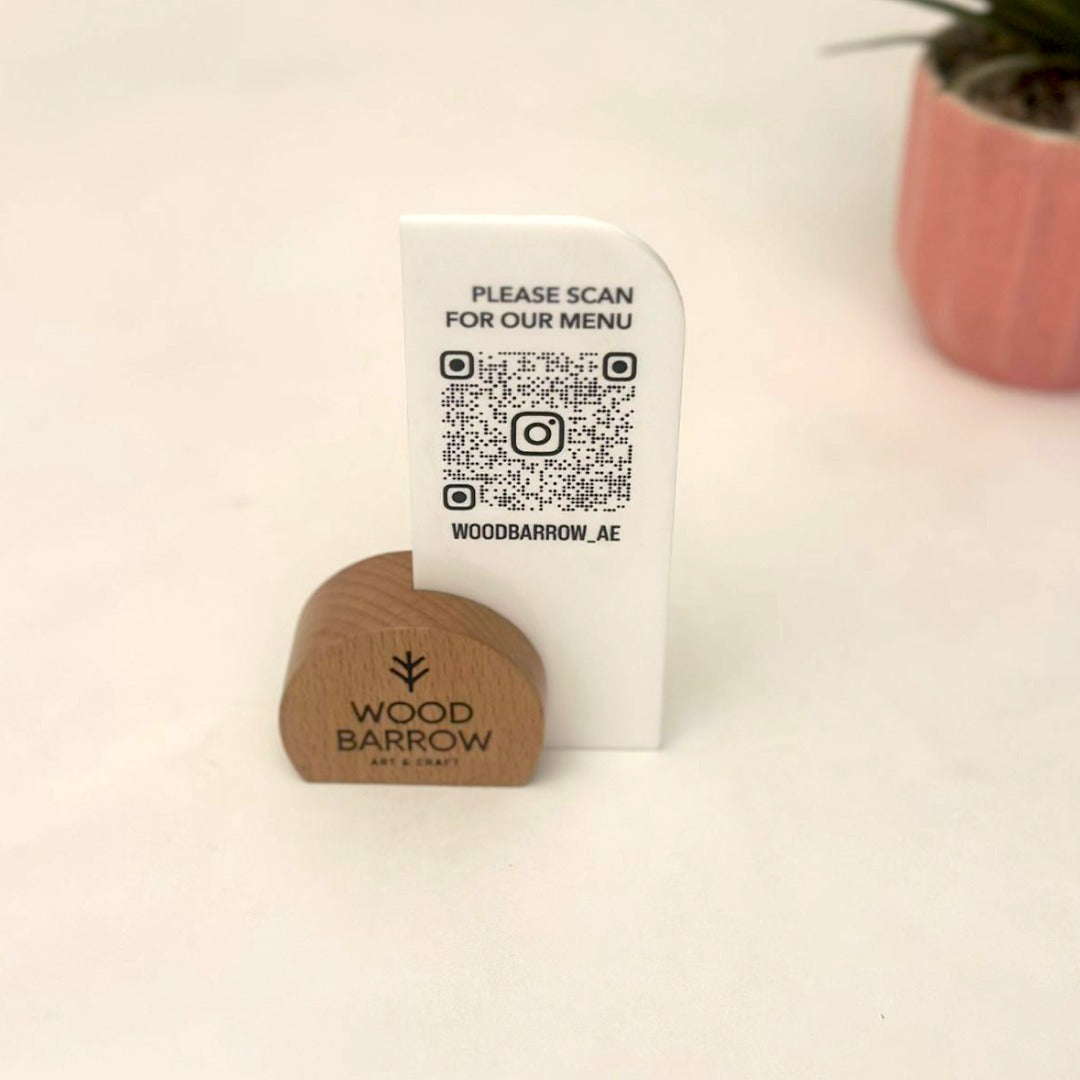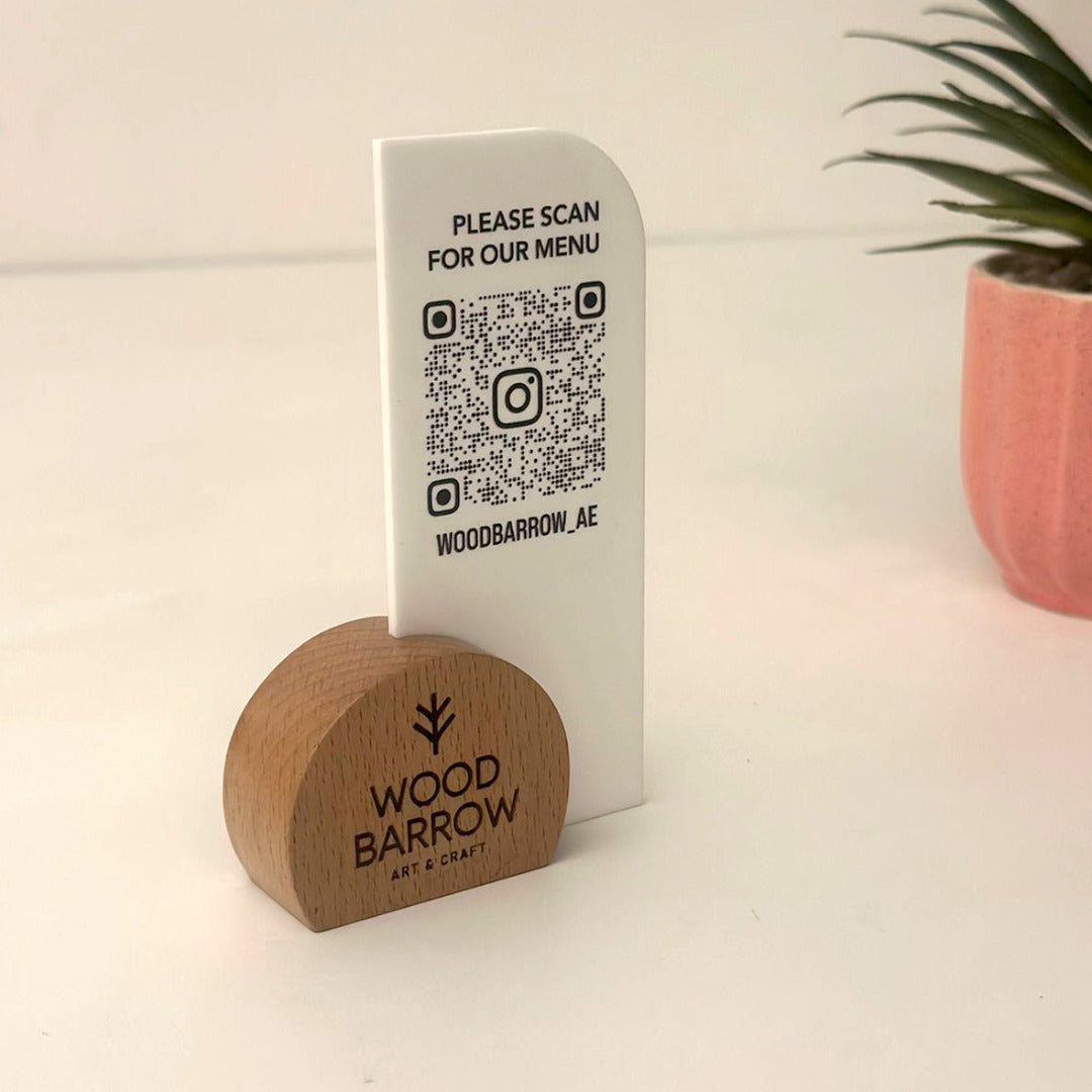 Enhance the dining experience for your guests with our Text Engraved Wooden QR Code Display. Crafted with precision and care, this 8cm x 12cm masterpiece combines the timeless appeal of wood with the modern convenience of QR code technology. Seamlessly integrate digital menus, promotions, and more into your establishment while adding a touch of sophistication to your décor. Each display is meticulously engraved and finished to perfection, ensuring durability and longevity. Elevate your business and provide a seamless, contactless experience for your patrons with our Engraved Wooden QR Code Display, now available on Wood Barrow.